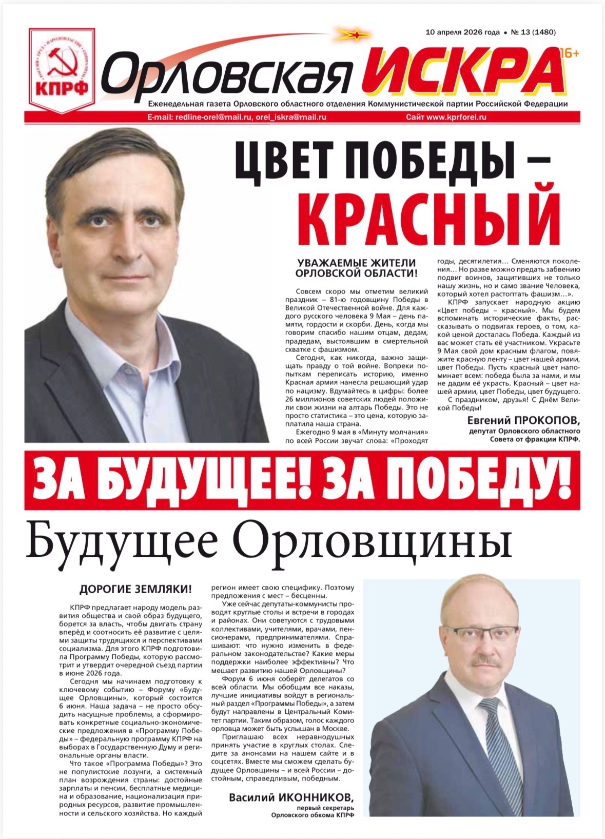 Орловская искра №13(1480) от 10 апреля 2026 года