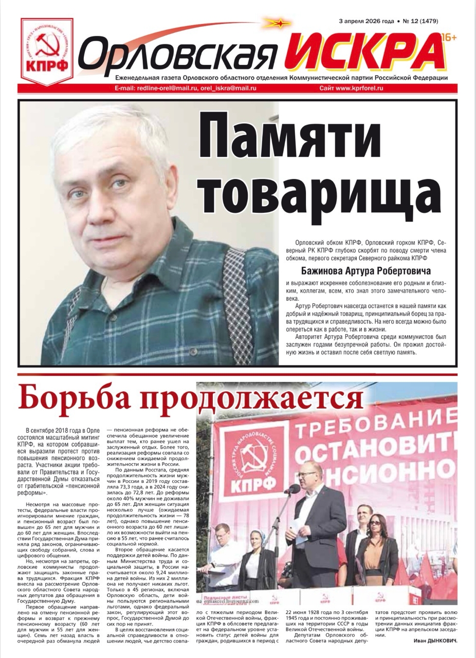 Орловская искра №12 (1479) от 03 апреля 2026 года