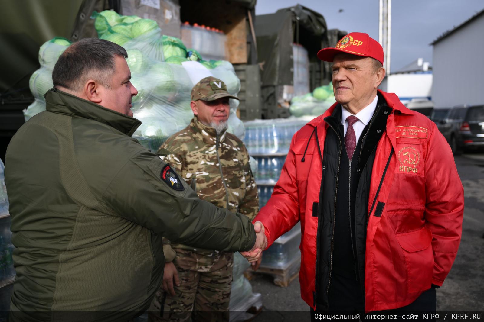 В отправке гуманитарного груза приняли активное участие Председатель ЦК КПРФ Геннадий Зюганов, заместитель Председателя ЦК КПРФ Владимир Кашин, члены Президиума ЦК Николай Васильев и Виктор Царихин, секретари ЦК КПРФ Казбек Тайсаев и Владимир Исаков, депутаты Государственной Думы Денис Парфёнов и Владислав Егоров.