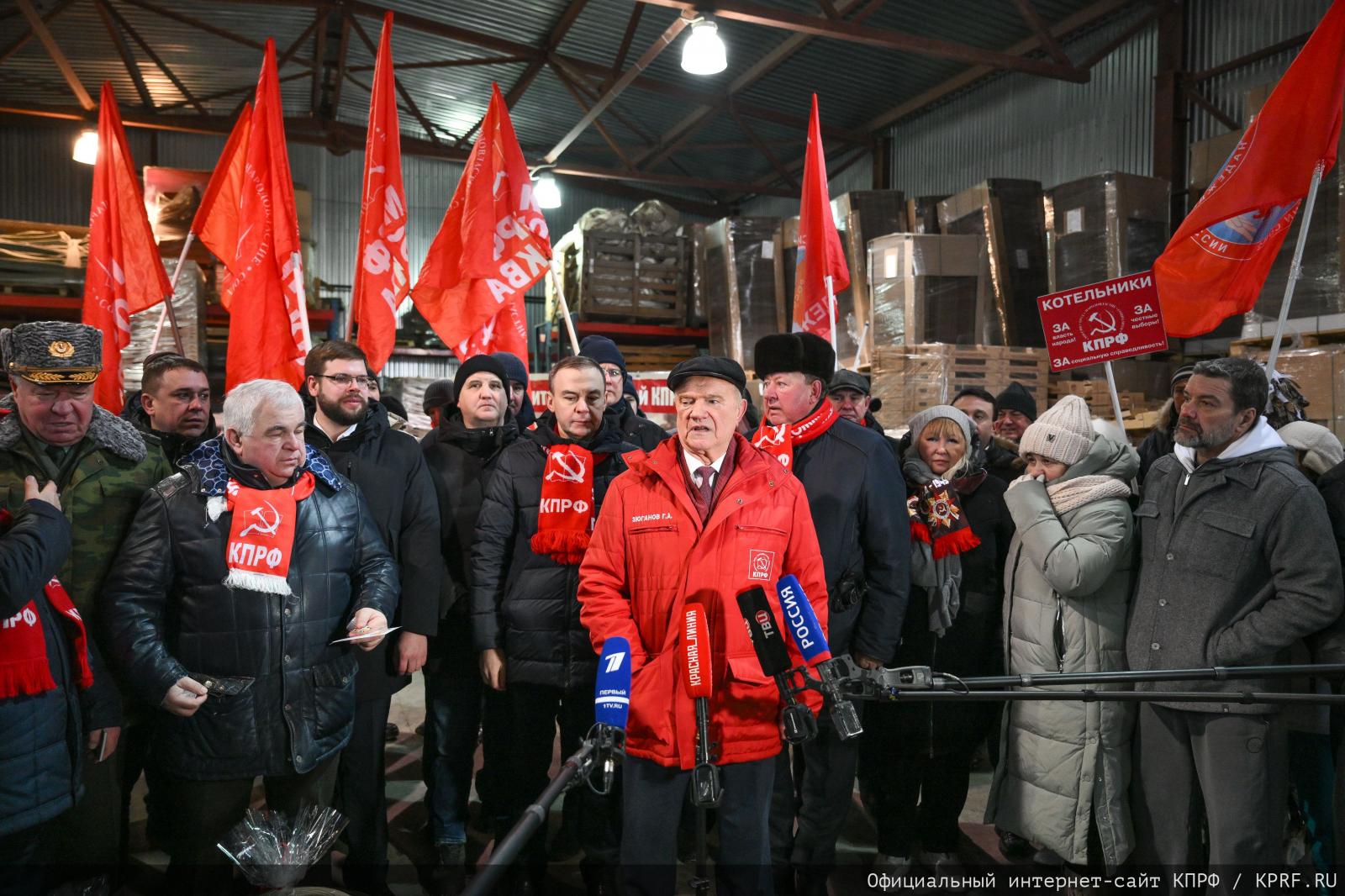 - Уважаемы товарищи! Мне хотелось бы прежде всего поблагодарить наши местные партийные организации, общественные организации в формировании этого гуманитарного конвоя. Владимир Иванович сказал, что наряду с центральной площадкой в течении января-февраля 11 наших местных отделений напрямую отправили в подразделения, над которыми они шефствуют, еще 14 конвоев, которые были сформированы по заказу наших бойцов. Поэтому работа продолжается. Мы уверены в нашей Победе, ждем ее! Хочу поздравить от лица жителей Подмосковья, от лица коммунистов всех наших героических воинов с наступающим Днем Советской Армии и Военно-Морского флота!