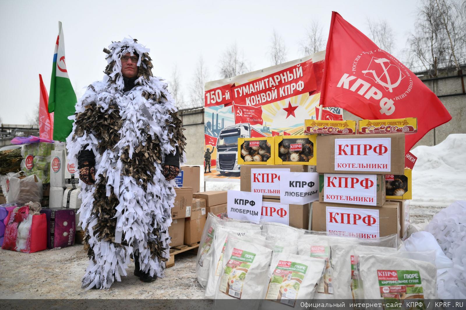 В формировании гуманитарного груза приняли активное участие Председатель ЦК КПРФ Геннадий Зюганов, заместитель Председателя ЦК КПРФ Владимир Кашин, первый заместитель Председателя ЦК КПРФ Юрий Афонин, члены Президиума ЦК Николай Васильев и Виктор Царихин и депутаты Госдумы от КПРФ Александр Ющенко, Виктор Соболев, Казбек Тайсаев, Артем Прокофьев, а также сенатор Совета Федерации Айрат Гибатдинов. От Московской областной Думы: заместитель Председателя Мособлдумы – руководитель фракции КПРФ, секретарь МК КПРФ Александр Наумов и депутат от КПРФ Татьяна Никитас. Большой вклад внесли в формирование гуманитарного конвоя коммунисты Подмосковья. Среди них секретари МК КПРФ - Василий Стасюк, второй секретарь МК ЛКСМ РФ, член МК КПРФ Артем Васильев, сотрудник МК КПРФ Константин Баранов, руководитель пресс-службы МК КПРФ, главред сайта МК КПРФ Евгения Наумова, руководитель аппарата фракции КПРФ в Мособлдуме Константин Елисеев, референт руководителя фракции КПРФ в Мособлдуме Александр Голуб, сотрудник выборного отдела Кирилл Имеев. Подключились активно и коммунисты Москвы (первый секретарь – Виктор Царихин), Владимира (первый секретарь - Антон Сидорко), Калуги (первый секретарь – Николай Яшкин), Нижнего Новогорода (первый секретарь - Владислав Егоров), Рязани (первый секретарь – Денис Сидоров), Твери (первый секретарь – Людмила Воробьева), Тулы (первый секретарь – Алексей Лебедев) и другие товарищи.