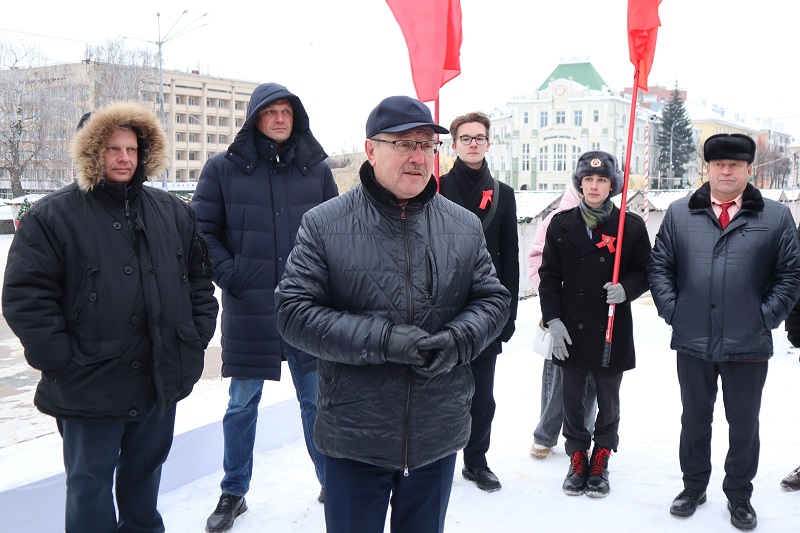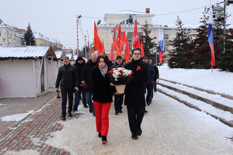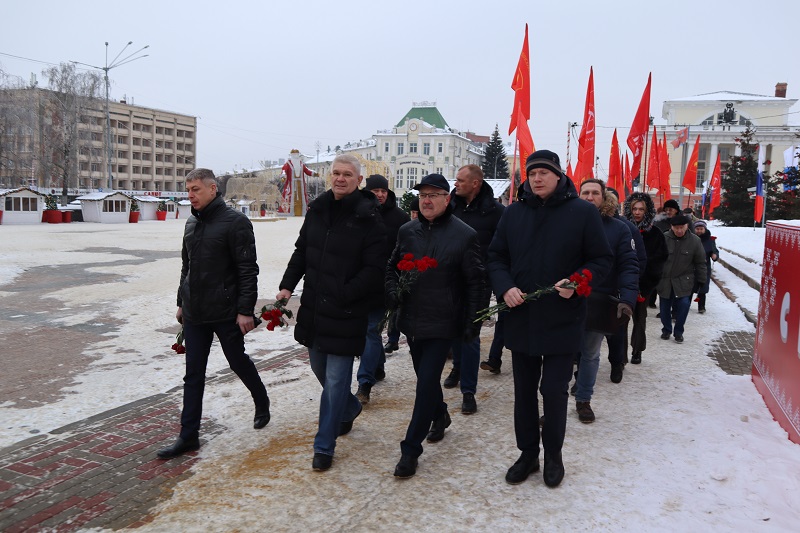 В Орле коммунисты, комсомольцы, активисты и сторонники партии возложили цветы к памятнику Владимиру Ильичу Ленину в день 102-й годовщины со дня его смерти.