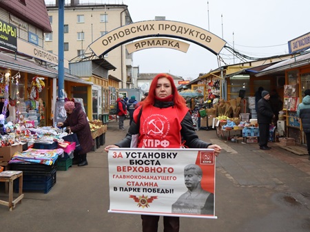 Вход РегистрацияВ 146-ю годовщину со дня рождения И.В. Сталина Орловские коммунисты провели одиночные пикеты. Целью акции стало напоминание о необходимости создания в Орловском парке Победы Аллеи Победителей с бюстами выдающихся военачальников, принимавших непосредственное участие в разработке и проведении стратегической операции «Кутузов», в результате которой была освобождена Орловская область. Центральное место на этой аллее, по предложению КПРФ, должен занять бюст Верховного Главнокомандующего И.В. Сталина.