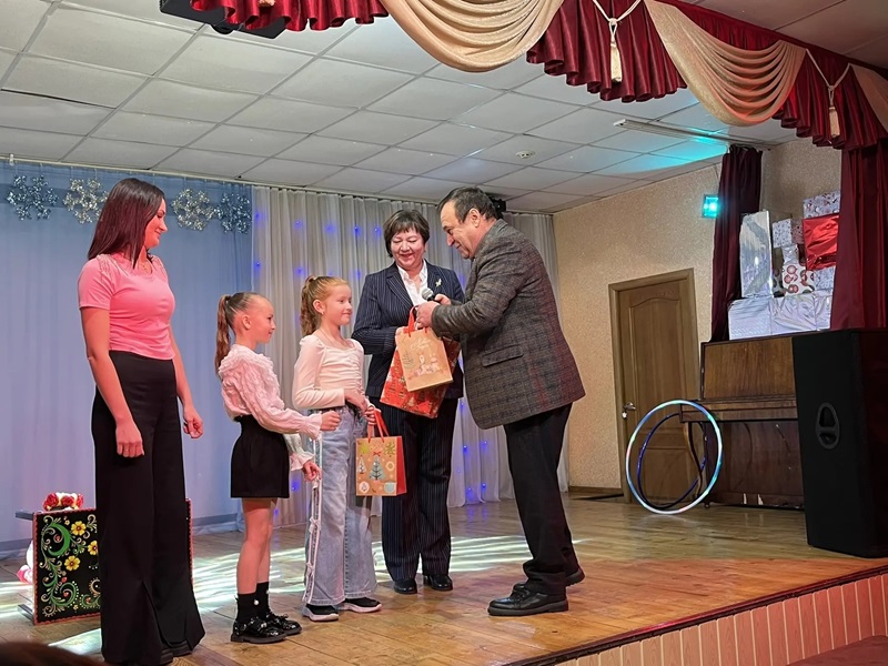 Он принял участие в предновогодней акции "Ёлка желаний" в ДК "Олимп" пгт. Знаменка Орловского МО Вячеслав Васильевич вручил подарки детям.
