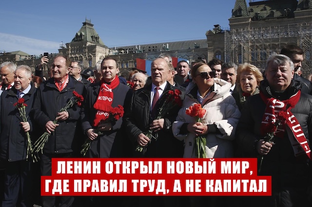 Сегодня капитализм не просто обанкротился. Он предаёт нашу державу. Нам всем надо понимать: ленинско-сталинская модернизация и наш прорыв в будущее, в космос, стали примером для всего человечества. Все с нас брали пример. Памятники Ленину поставили по всей планете. Его полное собрание сочинений, которое он написал в 55 томах за неполные 54 года, переведено на все мировые языки, есть во всех библиотеках. А сегодня наше телевидение — утром встал, в 5 часов включил — дает бегущую строку: все вспомнили, кто в этот день родился, кроме Ленина. Как надо себя не уважать, свою историю, свою культуру, свои победы, чтобы забыть об этой великой, удивительной дате и потрясающем примере для всего человечества?