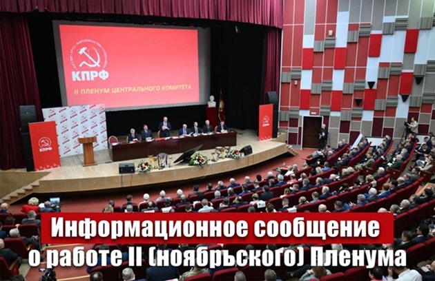 Вход Регистрация15 ноября в Подмосковье состоялся II (ноябрьский) пленум Центрального Комитета КПРФ. В его работе приняли участие члены ЦК и ЦКРК, секретари региональных комитетов партии, депутаты различных уровней, представители ЛКСМ РФ и других общественных объединений.
