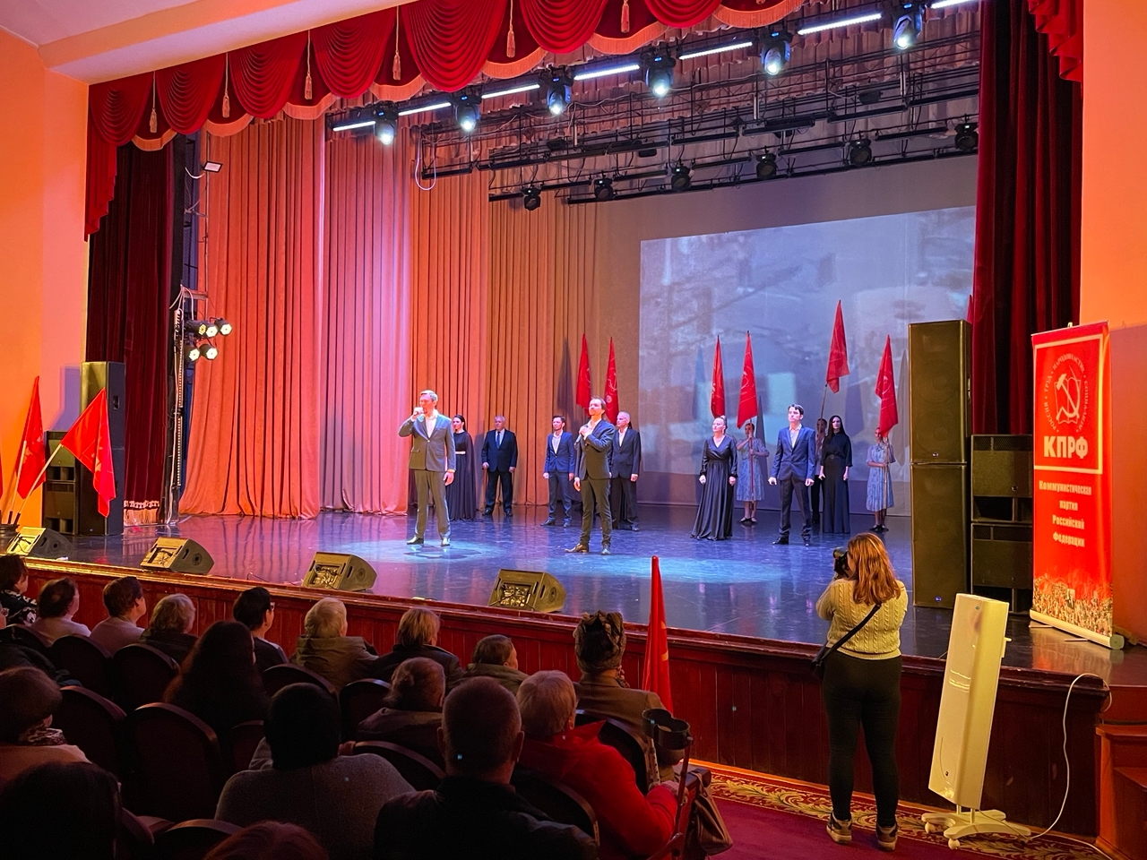 В городе Мценске Орловской области торжественно отметили годовщину Великой Октябрьской социалистической революции. В этот знаковый день, символизирующий рождение новой эпохи, по инициативе областного комитета КПРФ для жителей города был организован праздничный концерт.