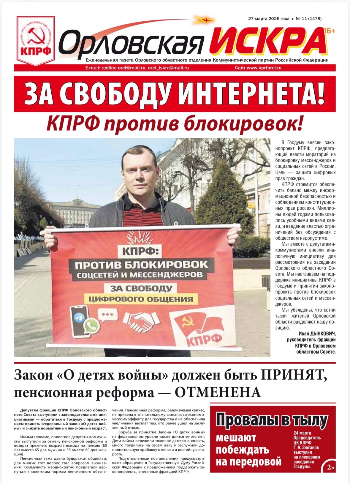 Орловская искра №11(1478) от 27 марта 2026 года