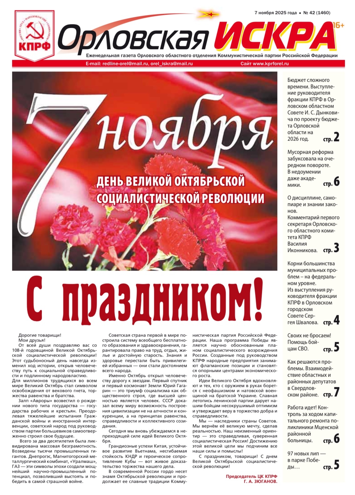 Орловская искра №42 (1360) от 07 ноября 2025 года