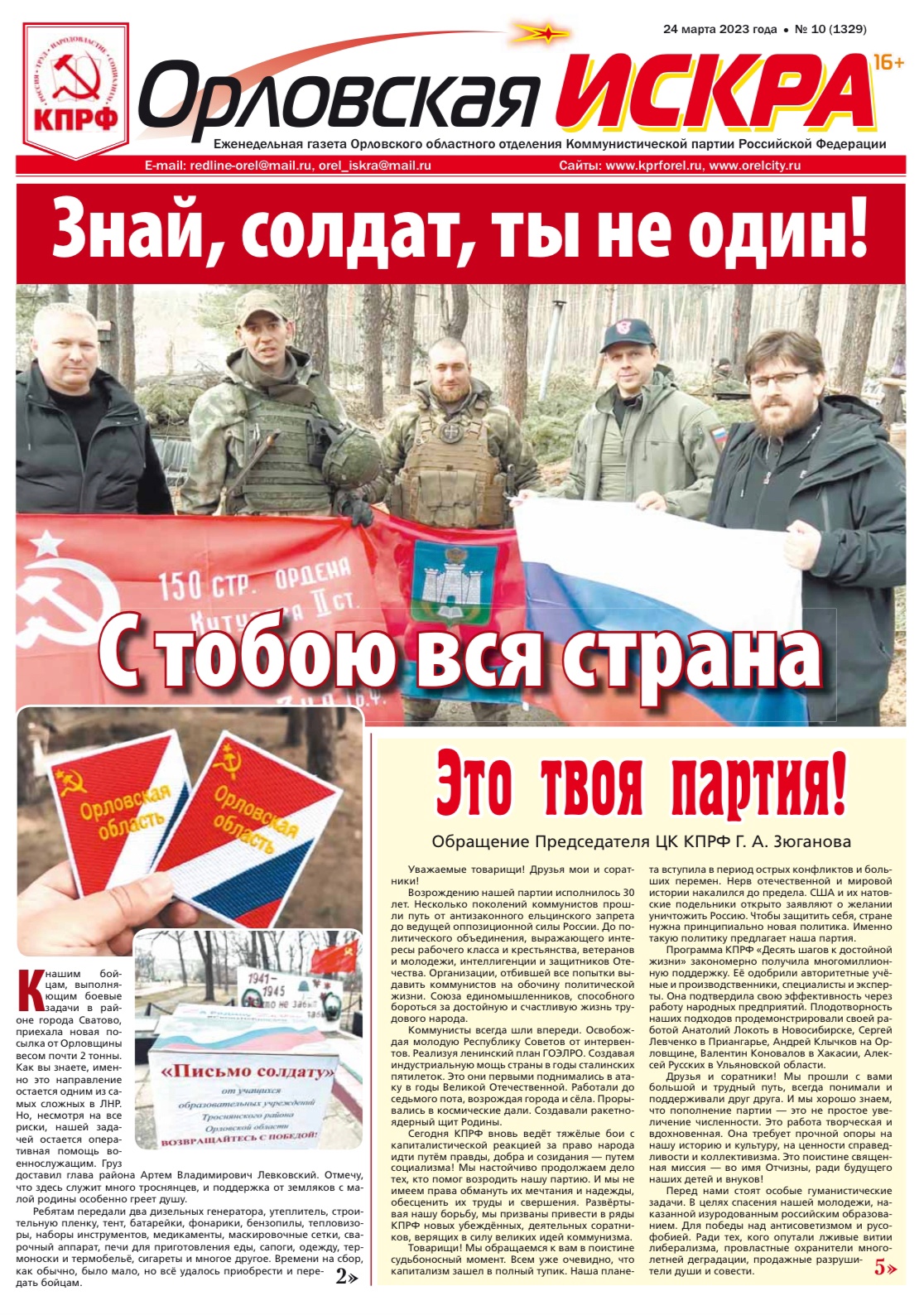Орловская искра №10 (1329) от 24 марта 2023 года