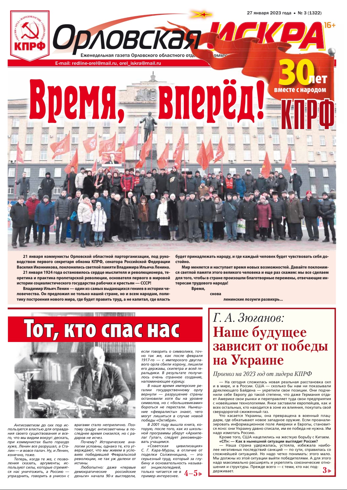 Орловская искра №4 (1323) от 03 февраля 2023 года
