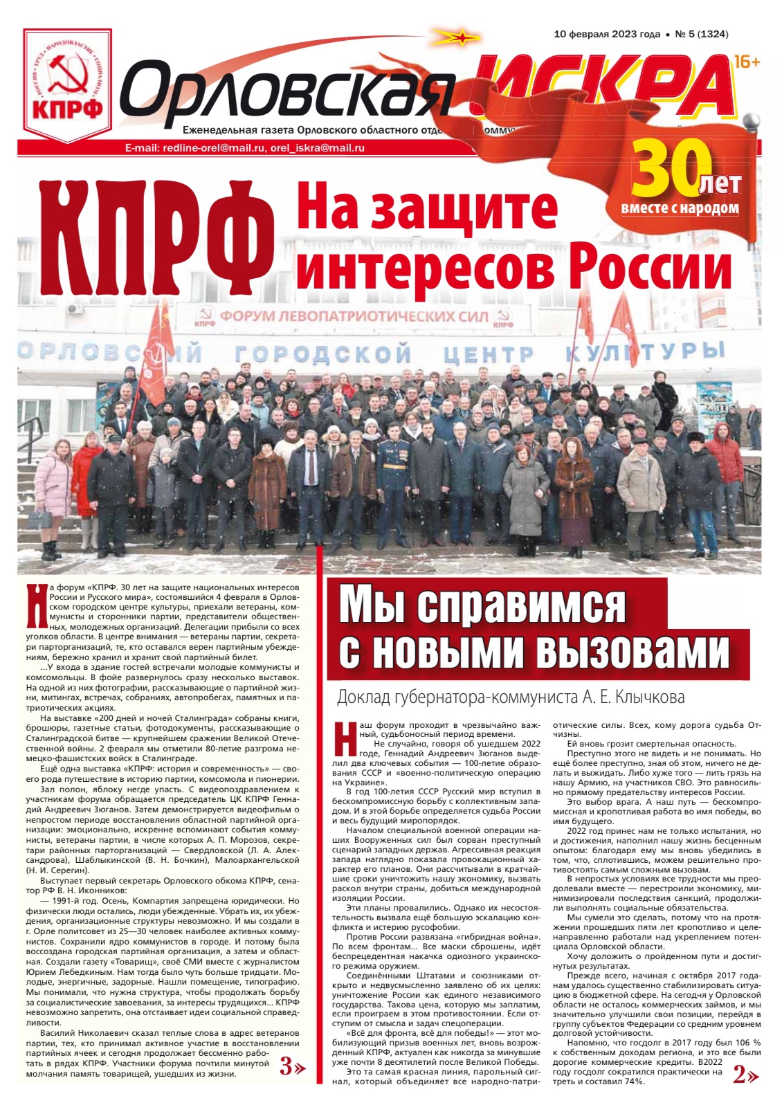 Орловская искра №5 (1324) от 10 февраля 2023 года