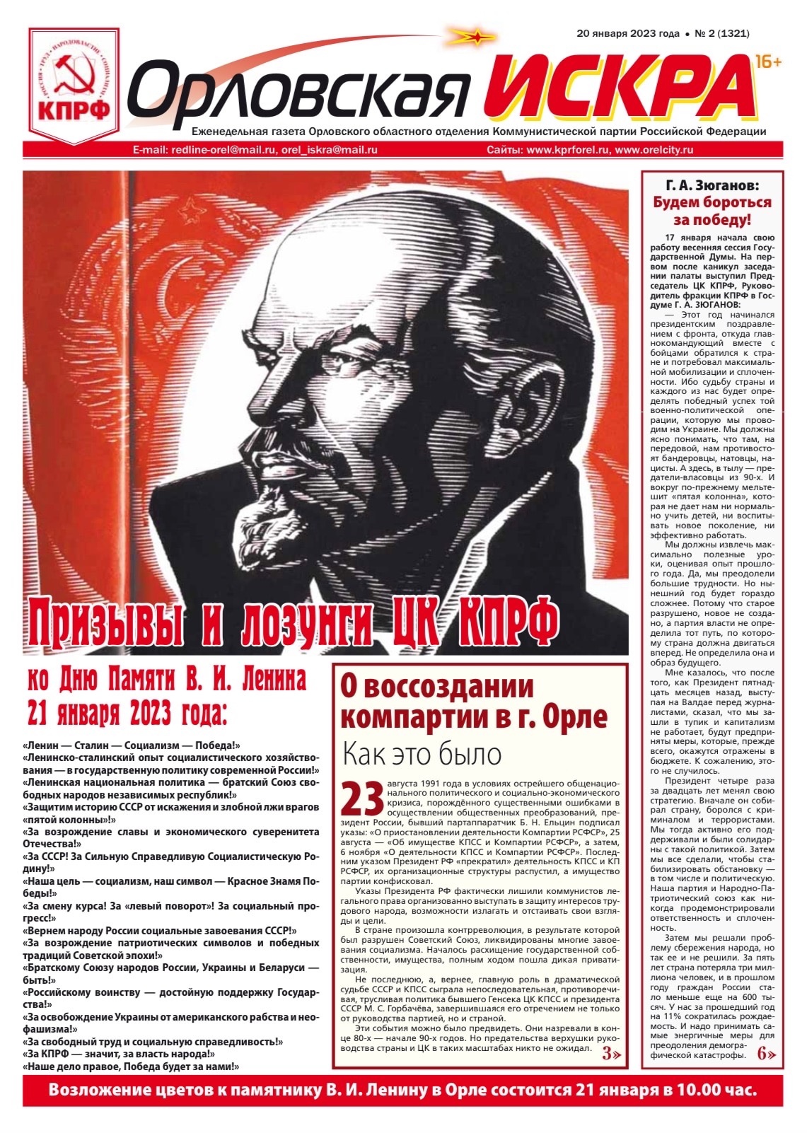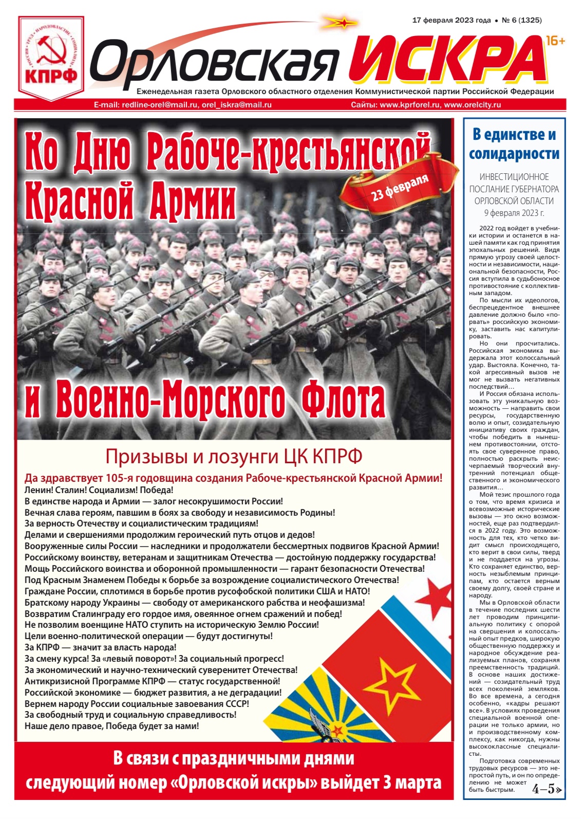 Орловская искра №6 (1325) от 17 февраля 2023 года