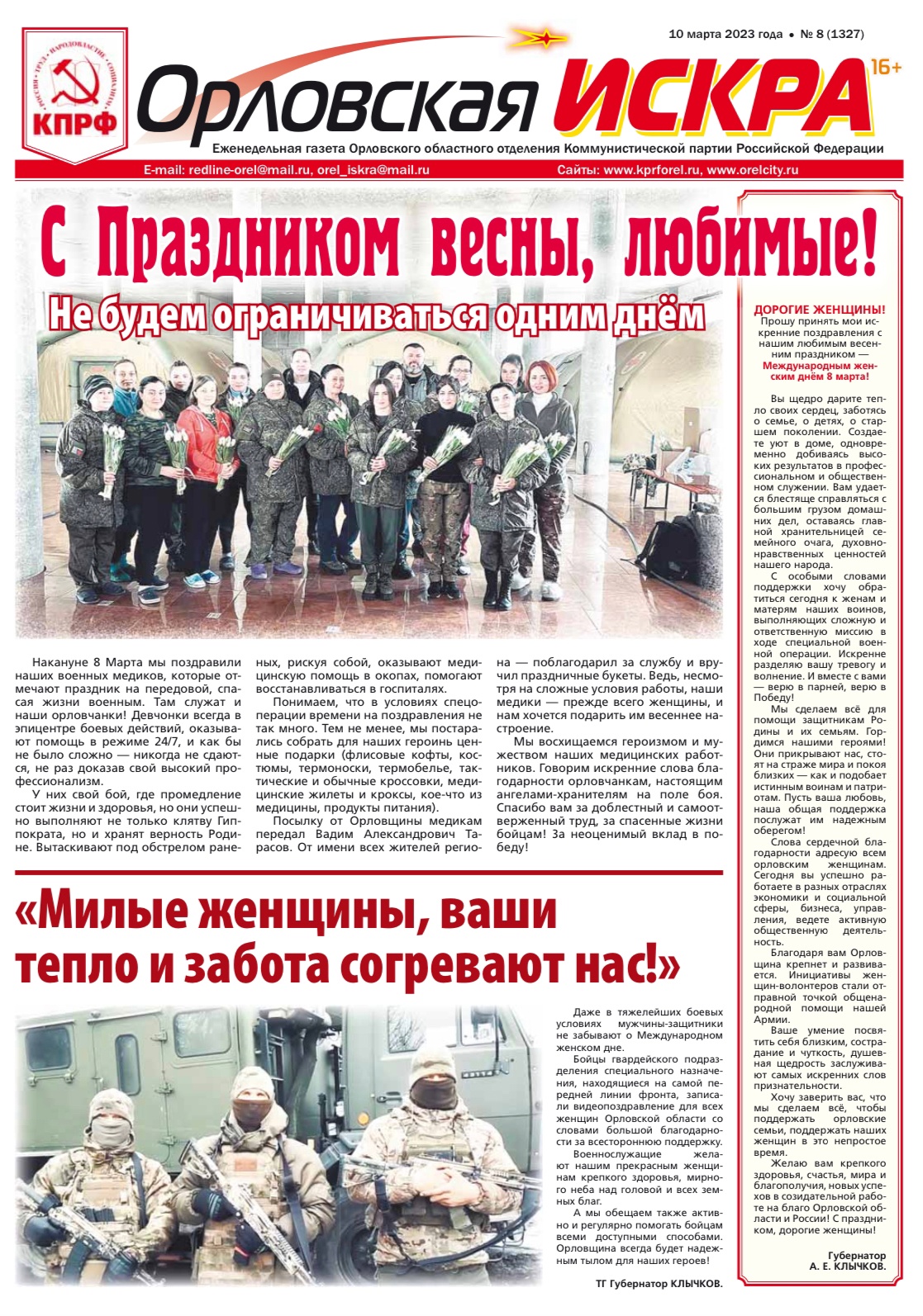 Орловская искра №8 (1327) от 10 марта 2023 года
