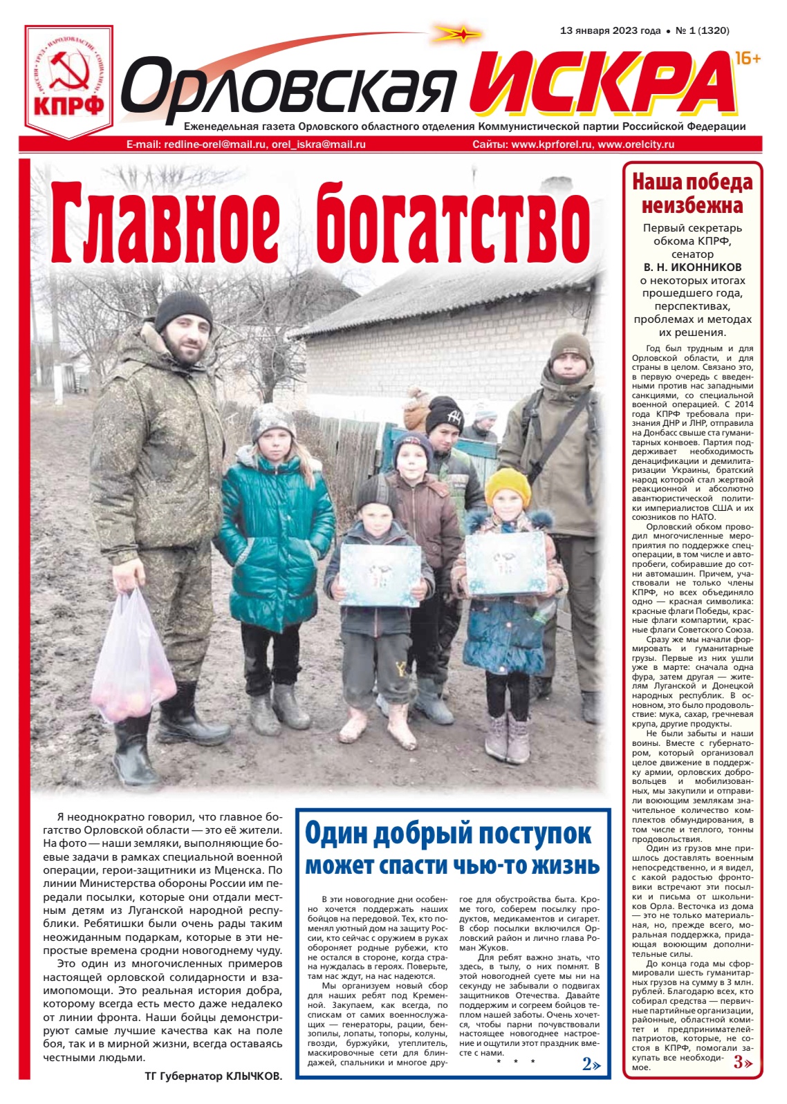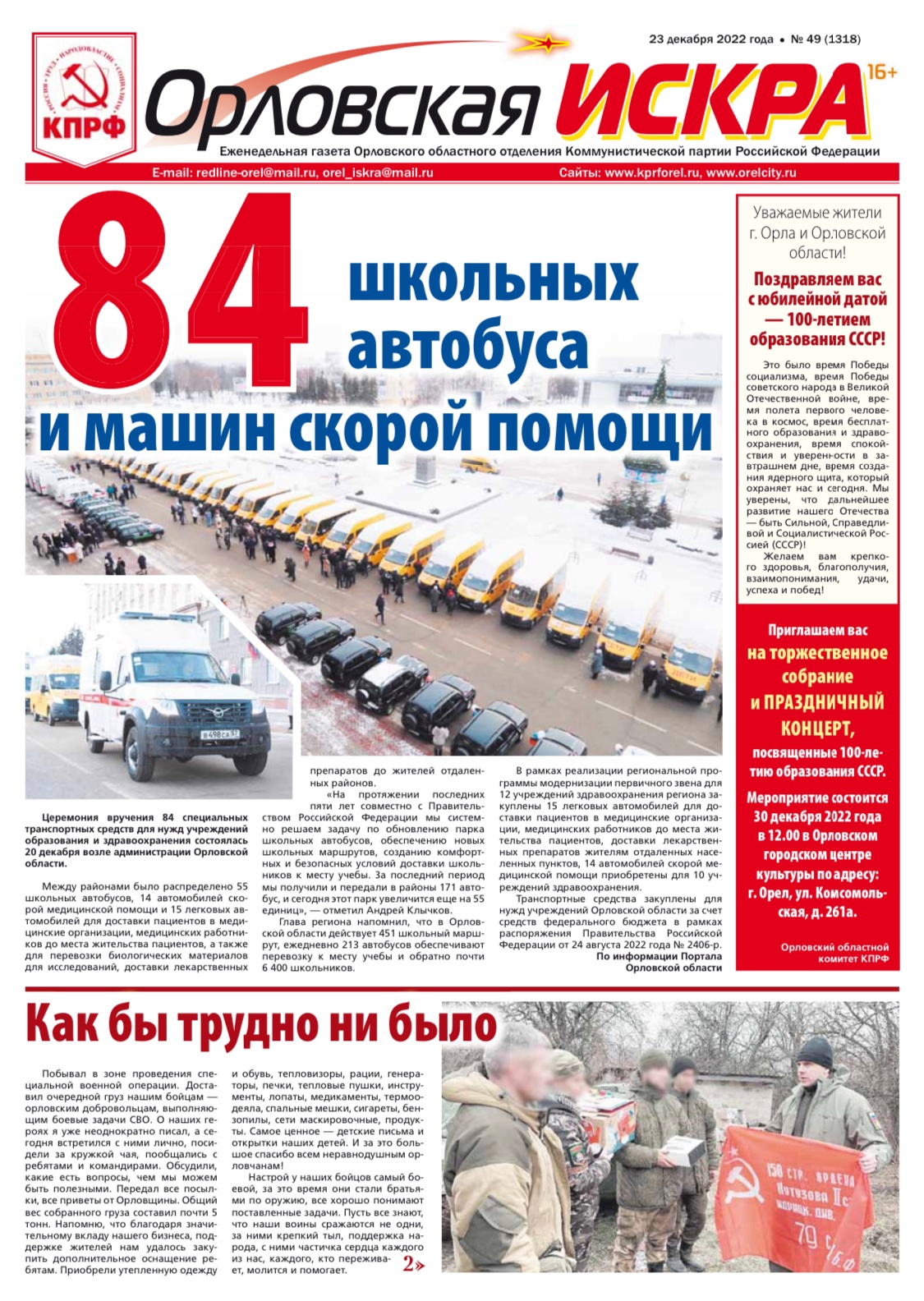 Орловская искра №49 (1318) от 23 декабря 2022 года