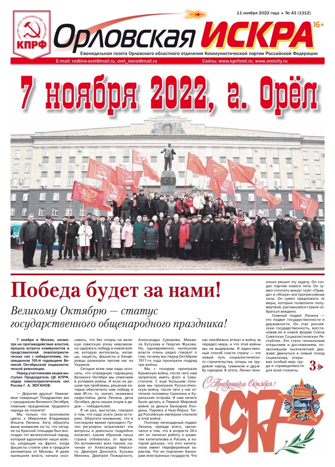 Орловская искра №43 (1312) от 11 ноября 2022 года