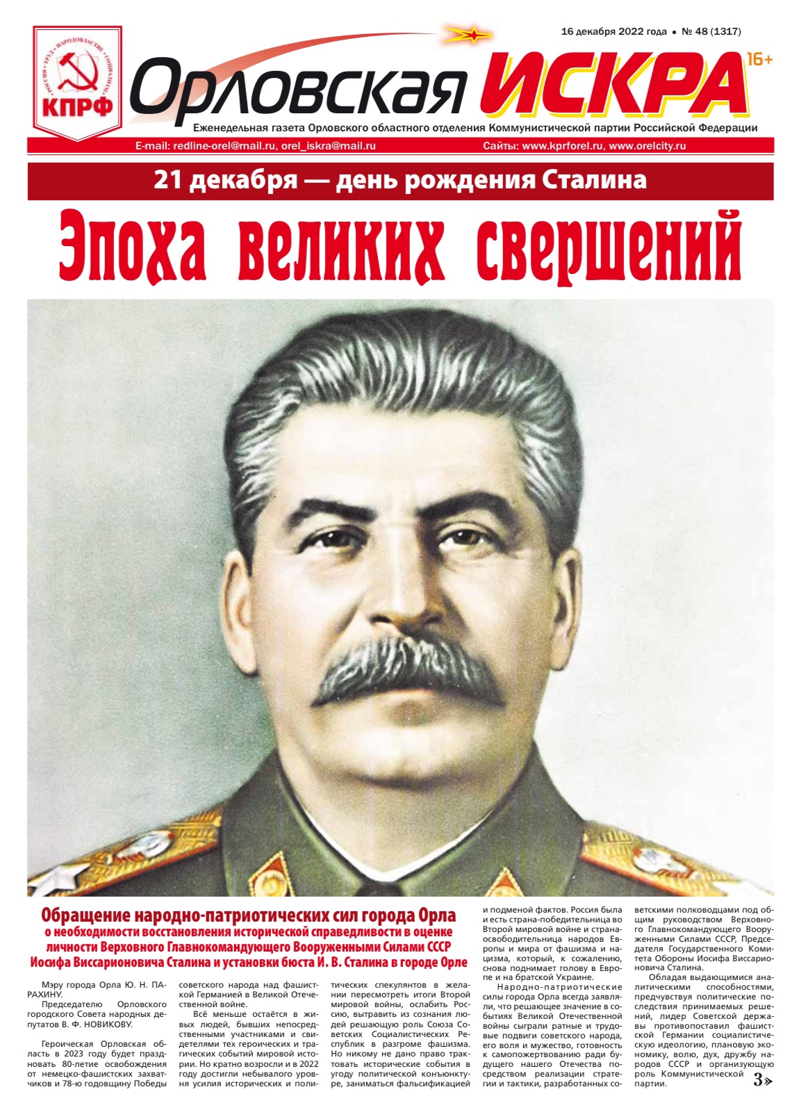 Орловская искра №48 (1317) от 16 декабря 2022 года