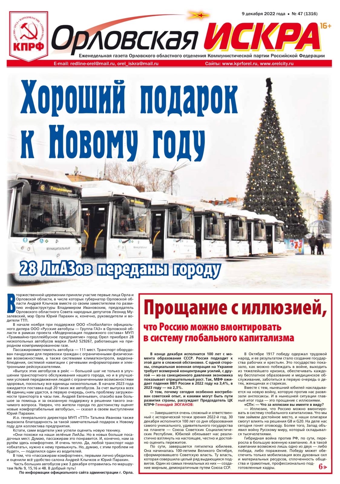 Орловская искра №47 (1316) от 09 декабря 2022 года