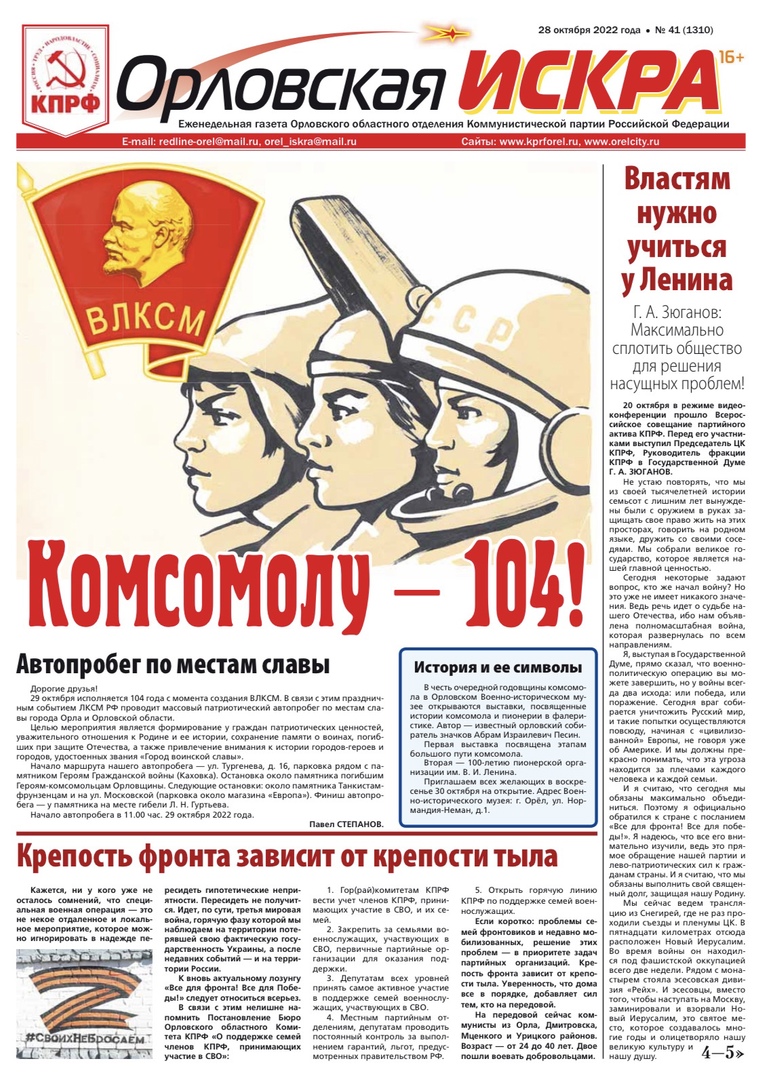 Орловская искра №41 (1310) от 28 октября 2022 года