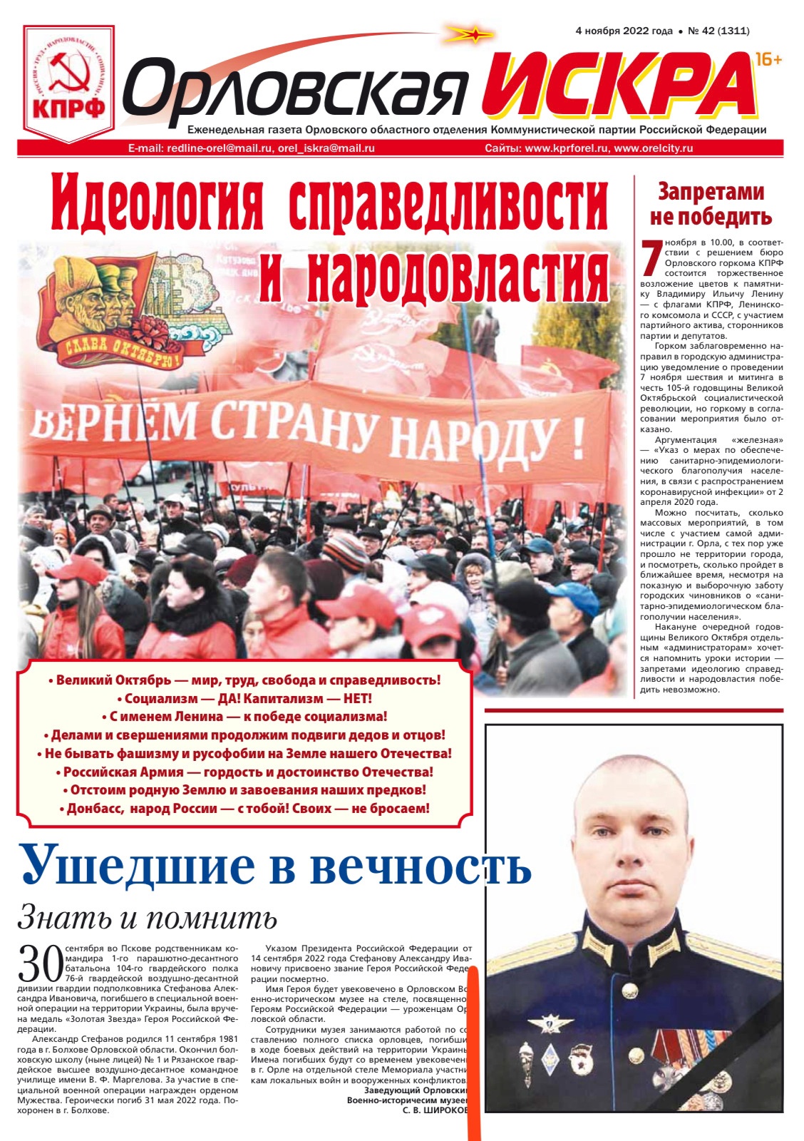 Орловская искра №42 (1311) от 04 ноября 2022 года