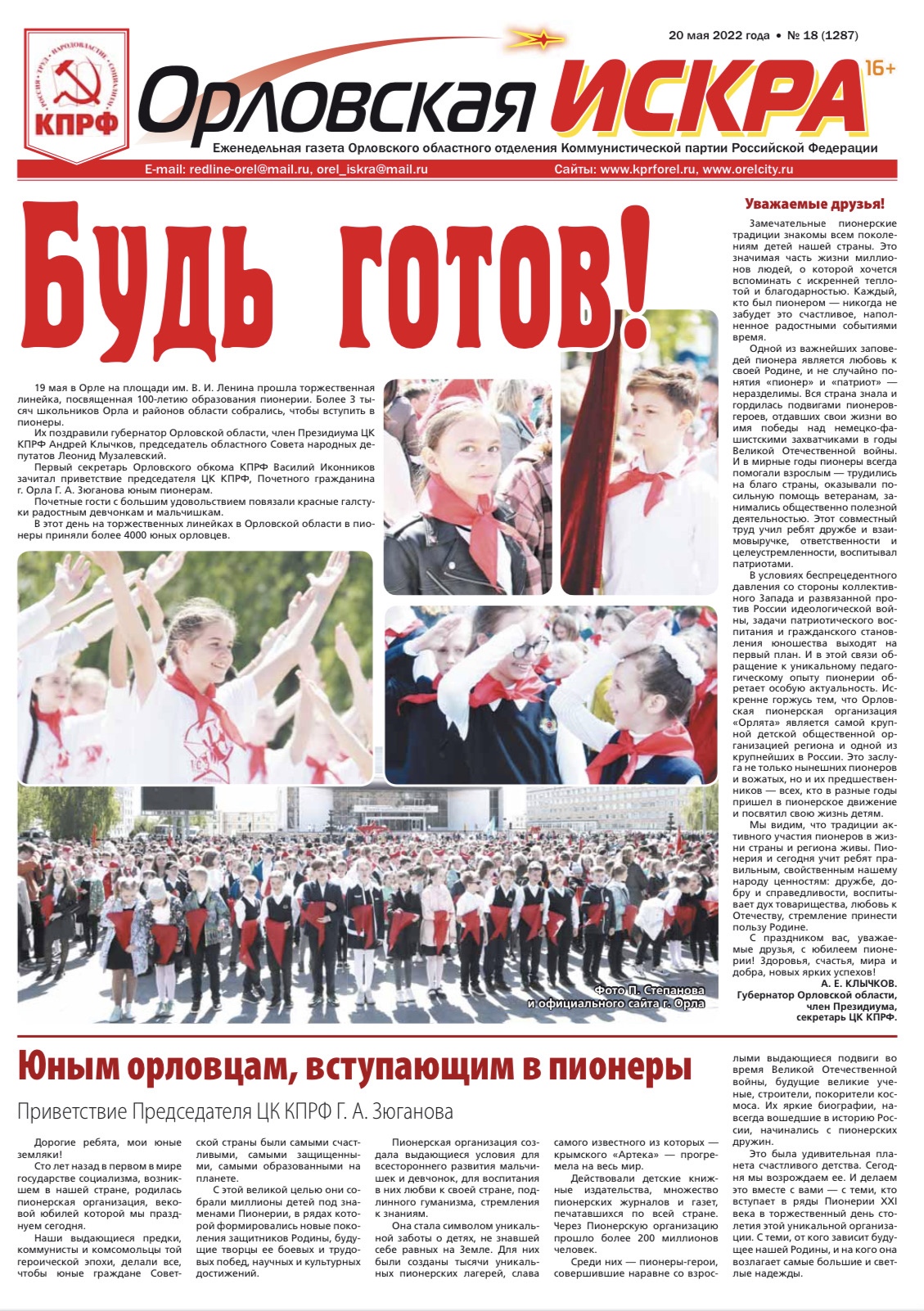 Орловская искра №16 (1286) от 06 мая 2022 года