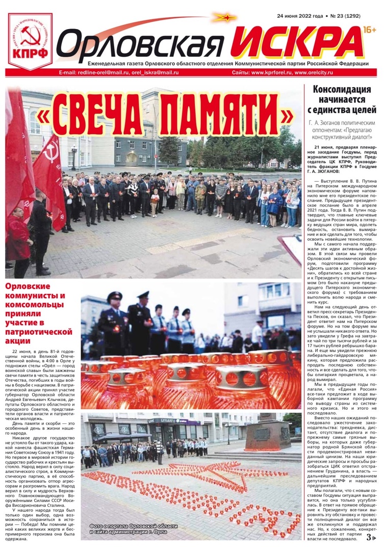Орловская искра №23 (1292) от 24 июня 2022 года