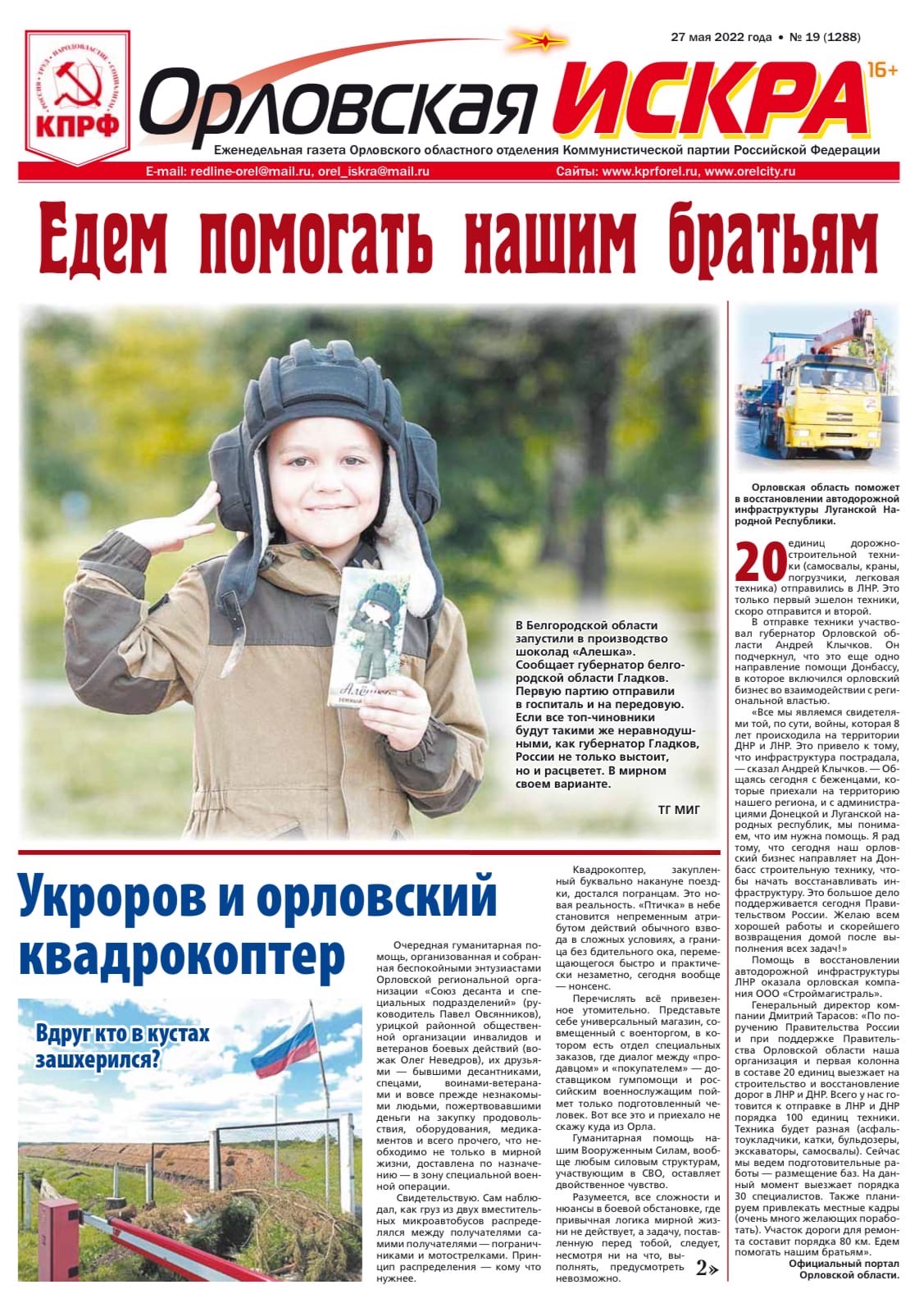Орловская искра №19 (1288) от 27 мая 2022 года