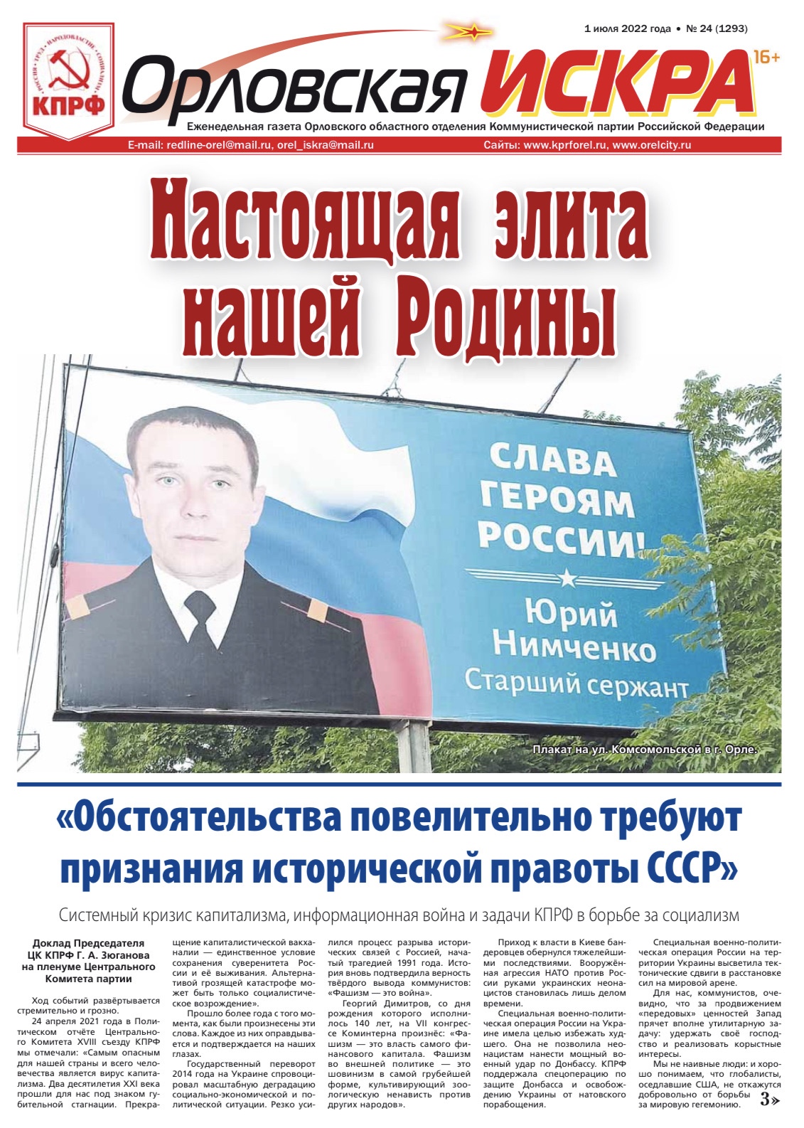 Орловская искра №24 (1293) от 01 июля 2022 года