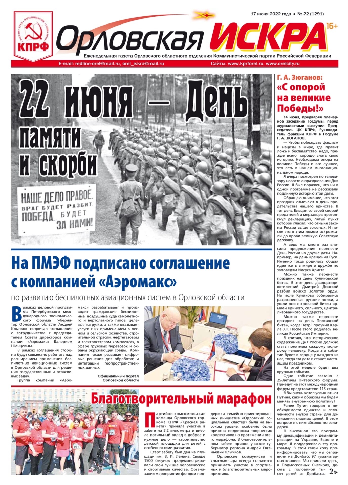Орловская искра №22 (1291) от 17 июня 2022 года