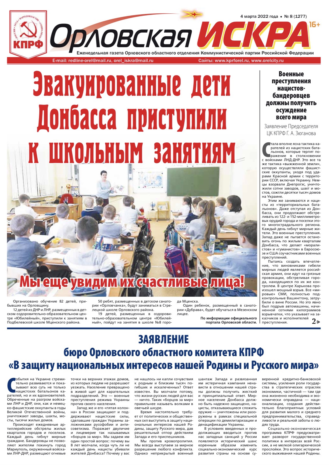 Орловская искра №8 (1277) от 04 марта 2022 года