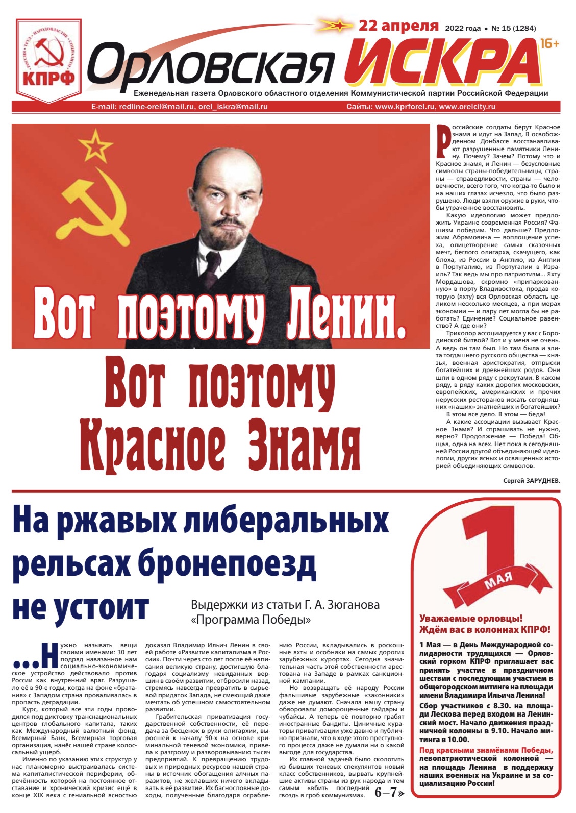 Орловская искра №15 (1284) от 22 апреля 2022 года