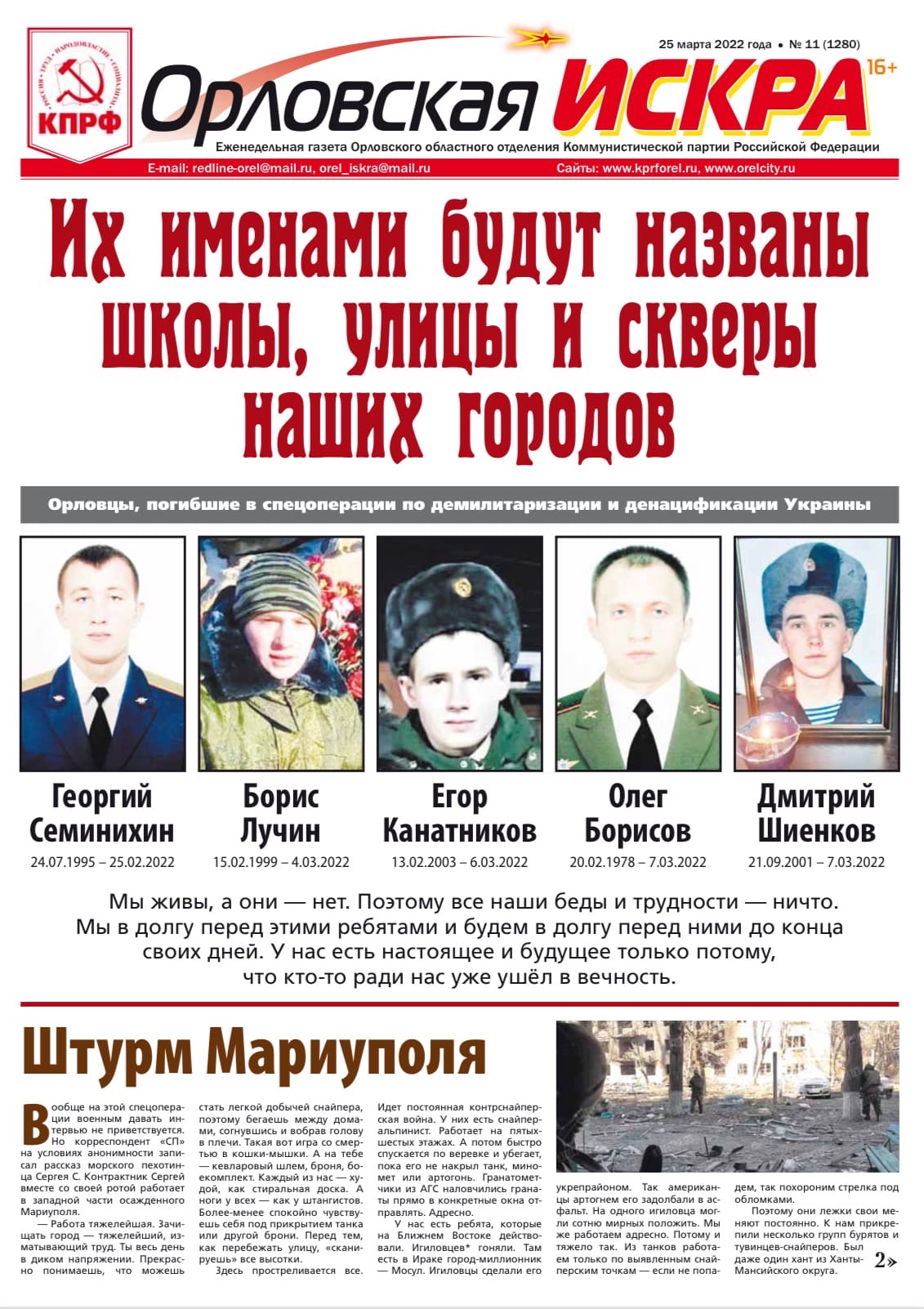 Орловская искра №11 (1280) от 25 марта 2022 года