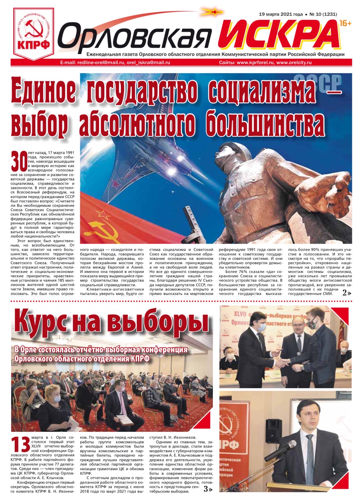 Орловская искра №10 (1131) от 19 марта 2021 года
