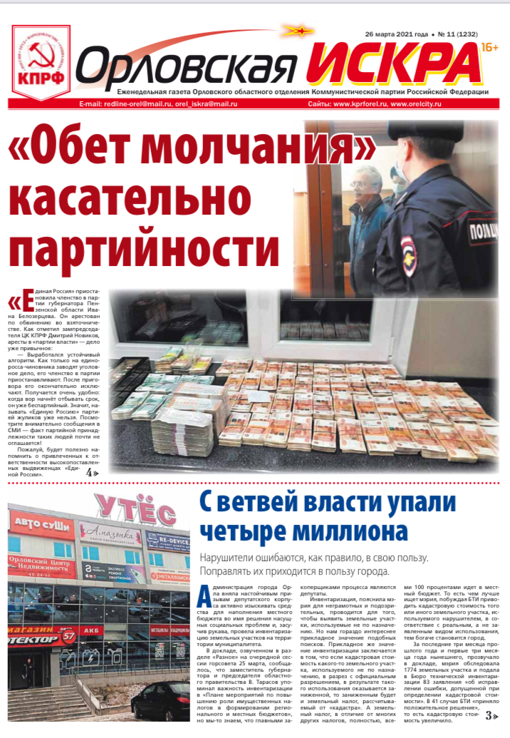 Орловская искра №11 (1132) от 26 марта 2021 года