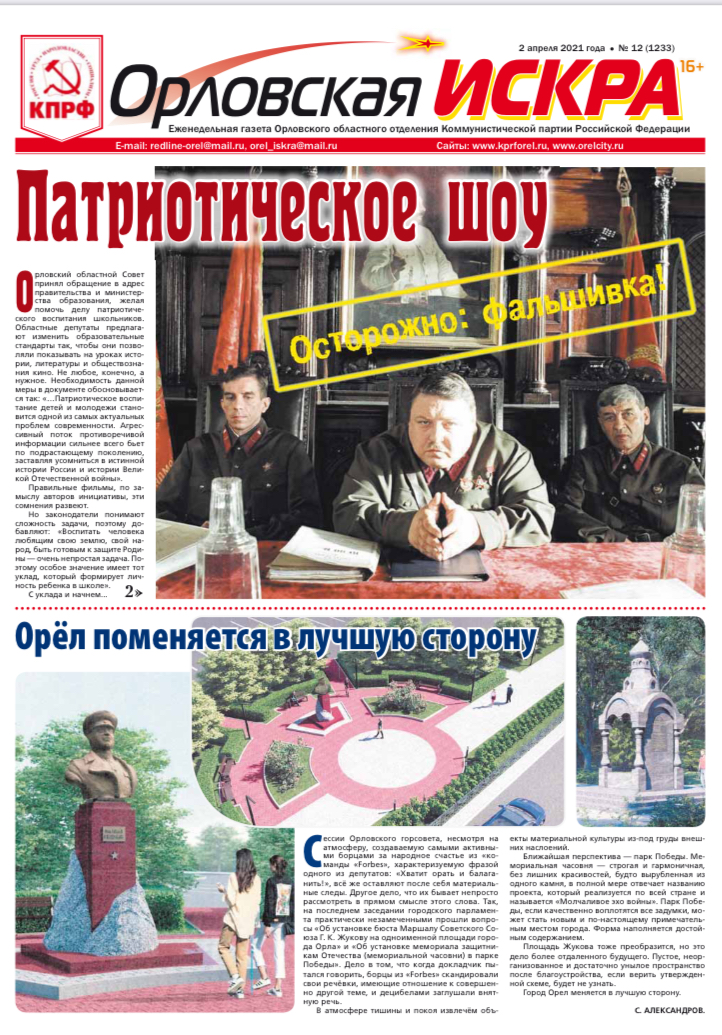 Орловская искра №12 (1133) от 02 апреля 2021 года