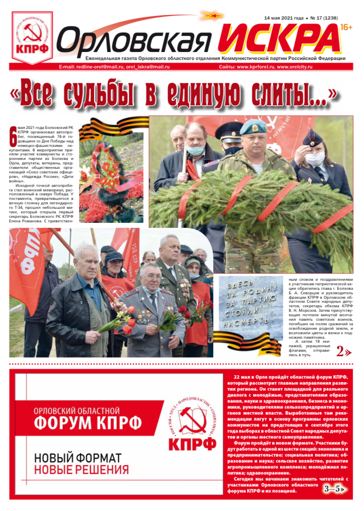 Орловская искра №17 (1238) от 14 мая 2021 года