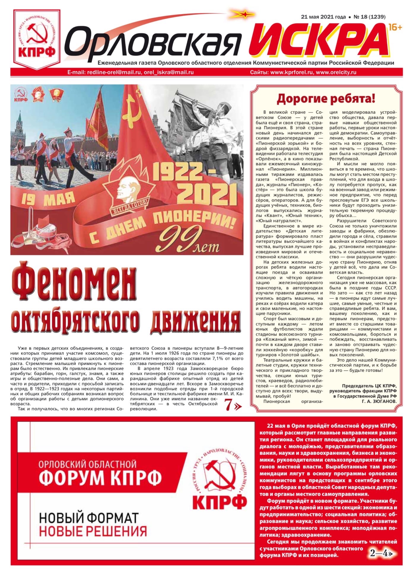 Орловская искра №18 (1239) от 21 мая 2021 года