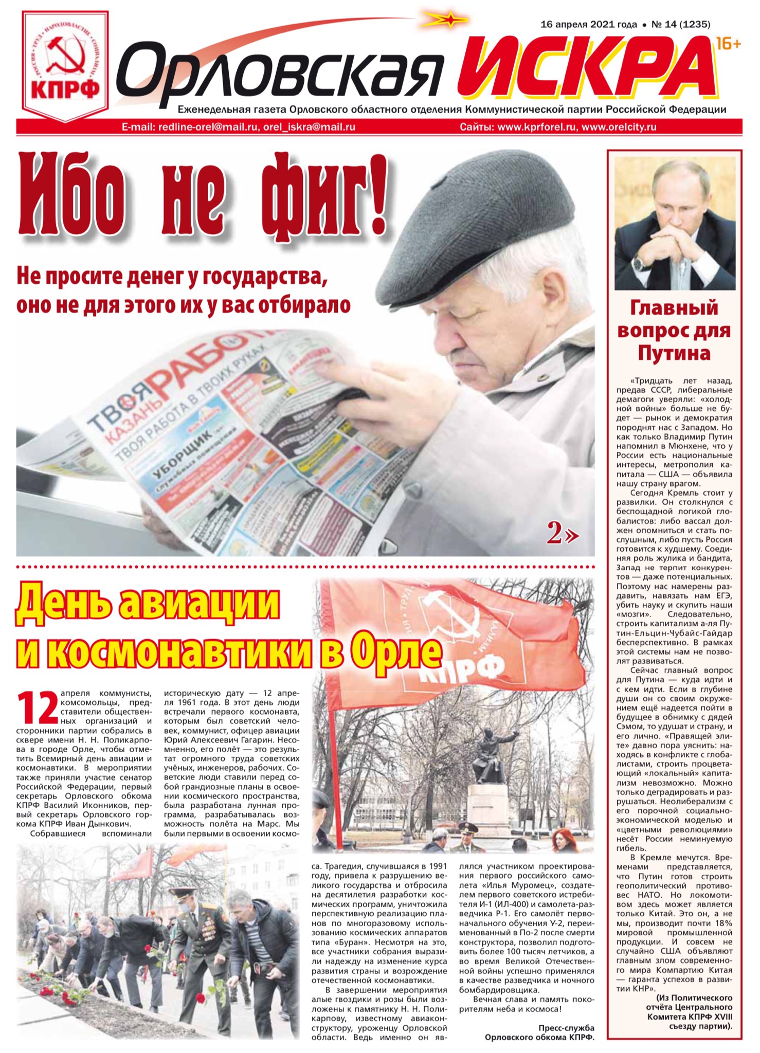 Орловская искра №14 (1135) от 16 апреля 2021 года