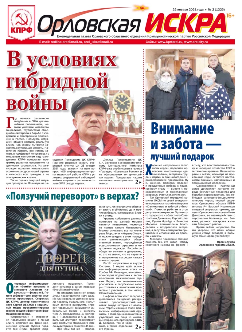 Орловская искра №2 (1223) от 22 января 2021 года