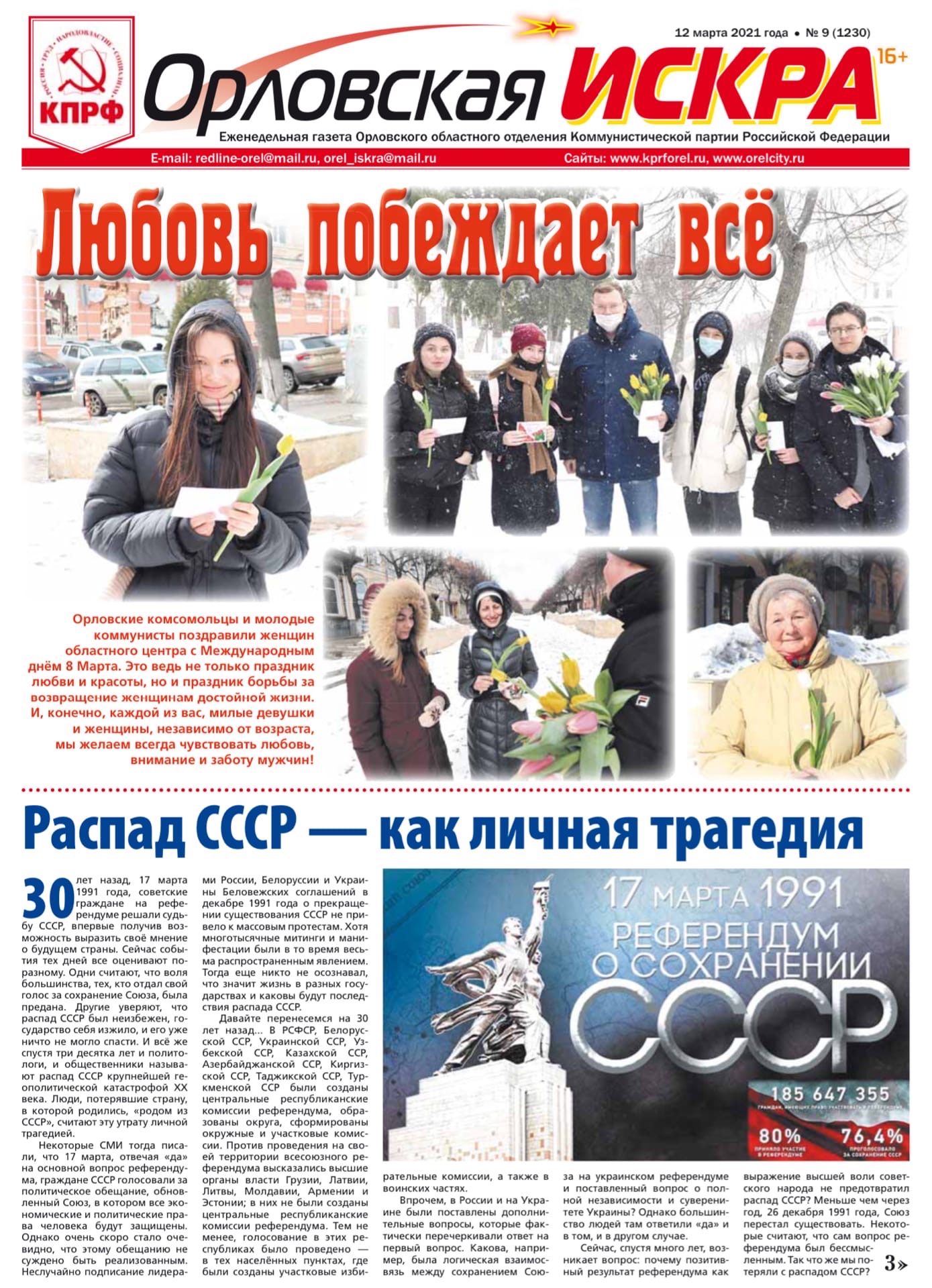 Орловская искра №9 (1130) от 12 марта 2021 года