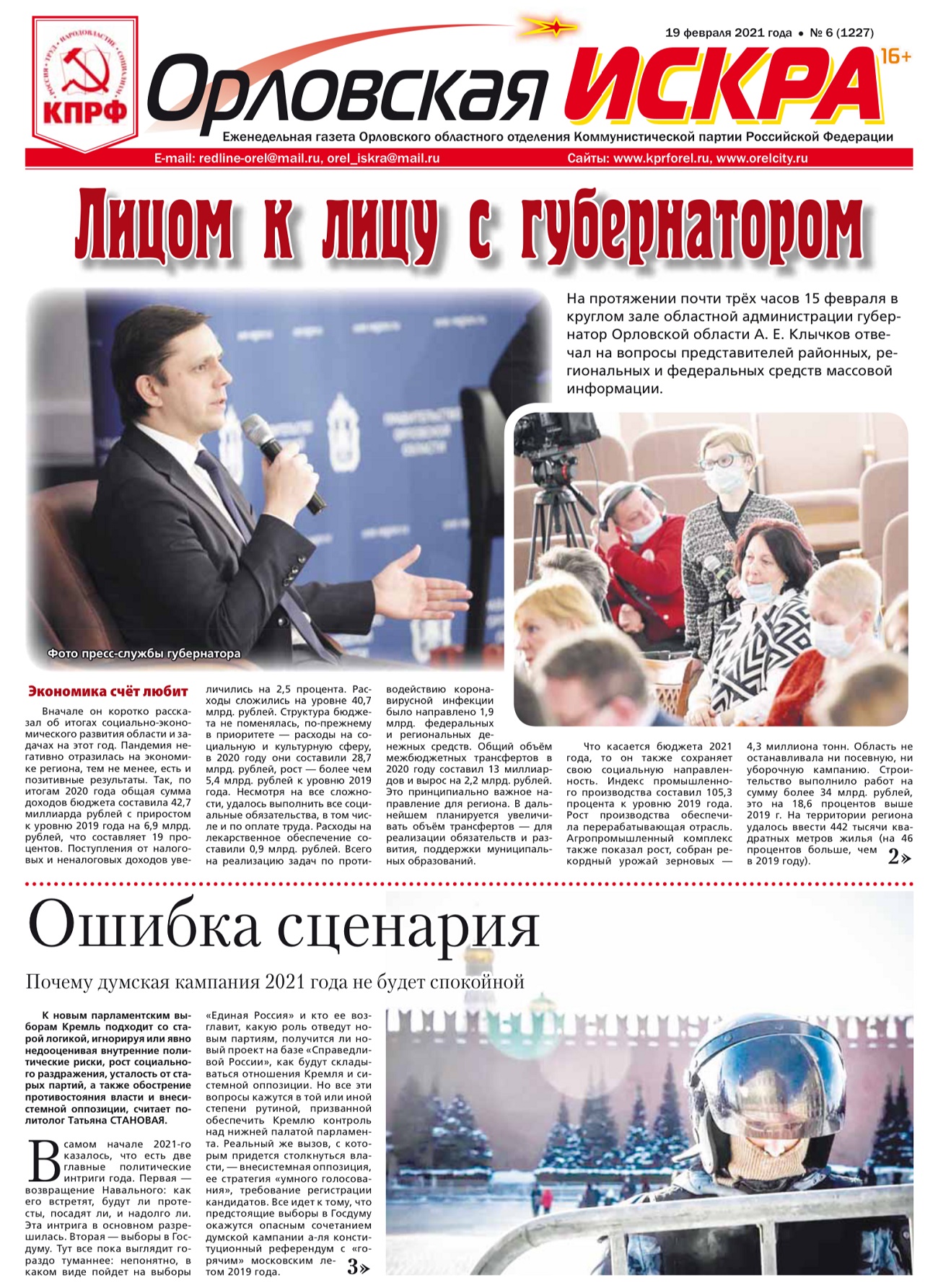 Орловская искра №6 (1227) от 18 февраля 2021 года