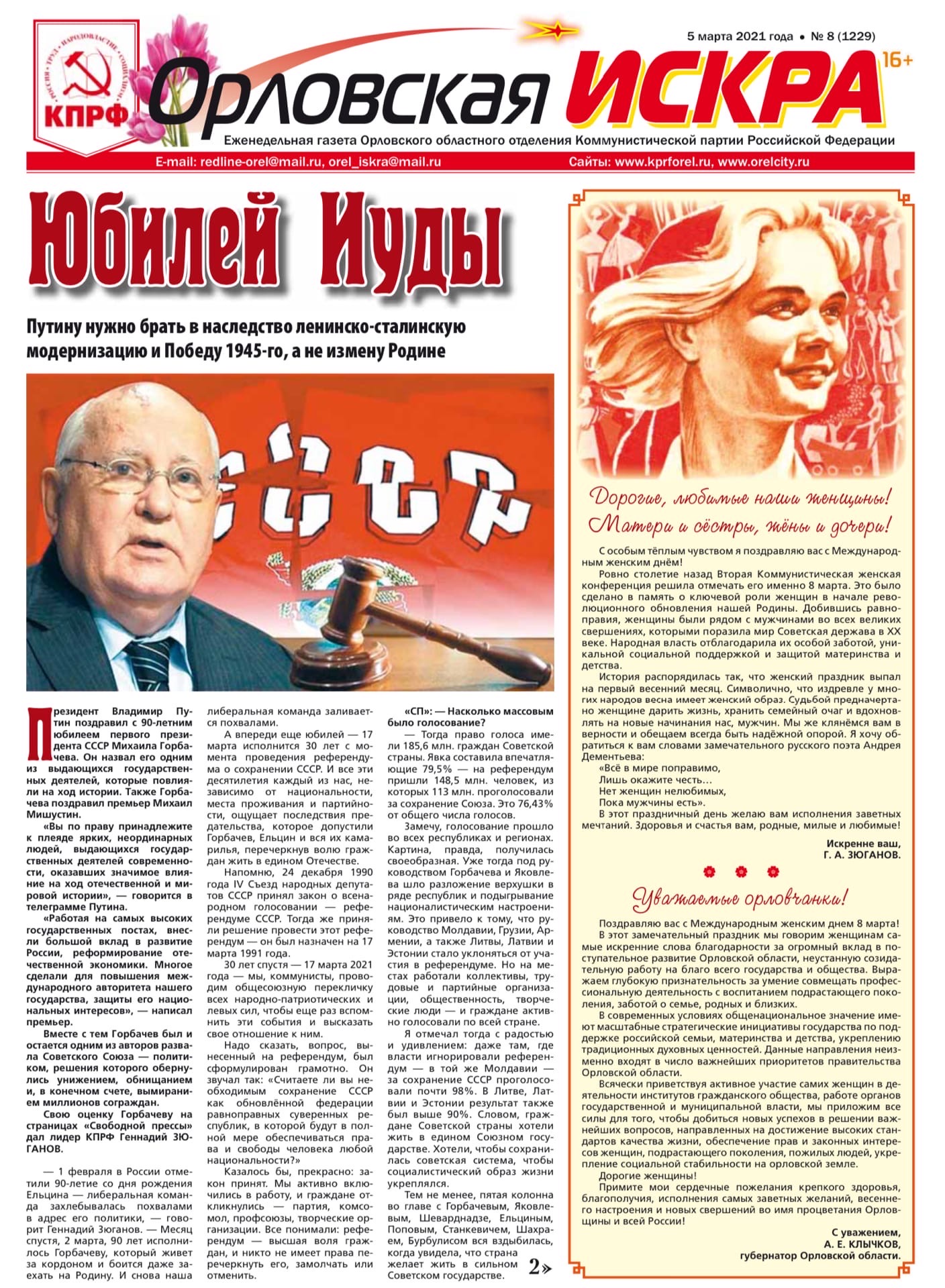 Орловская искра №8 (1229) от 05 марта 2021 года