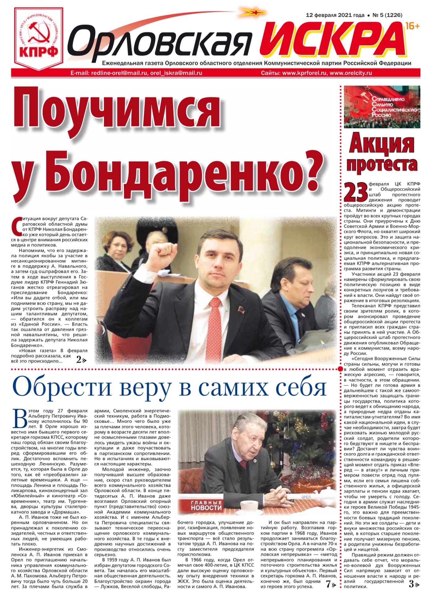 Орловская искра №5 (1226) от 12 февраля 2021 года