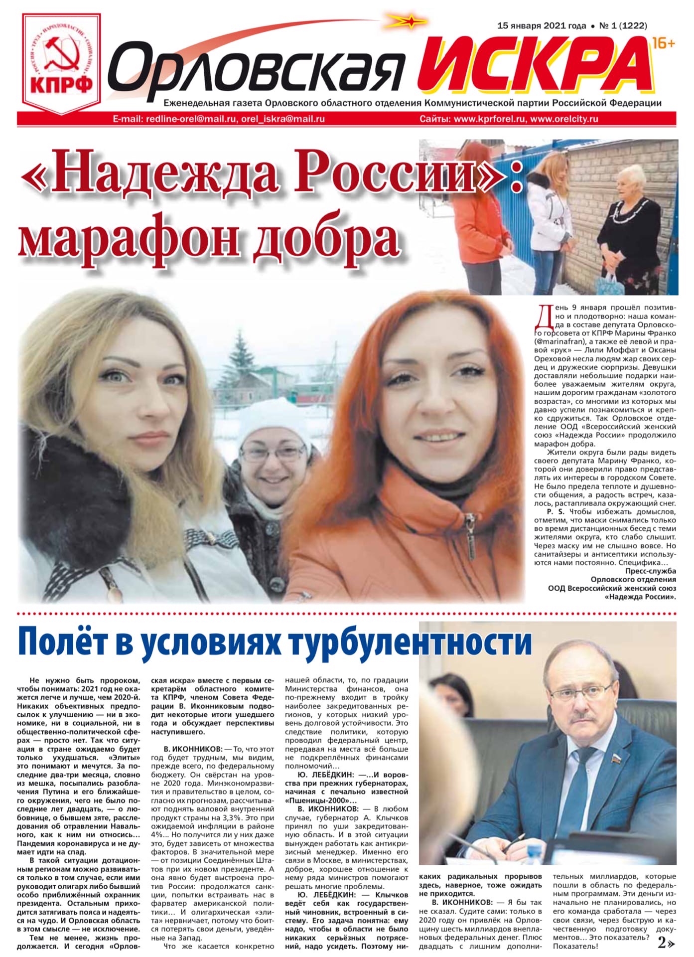 Орловская искра №1 (1222) от 15 января 2021 года