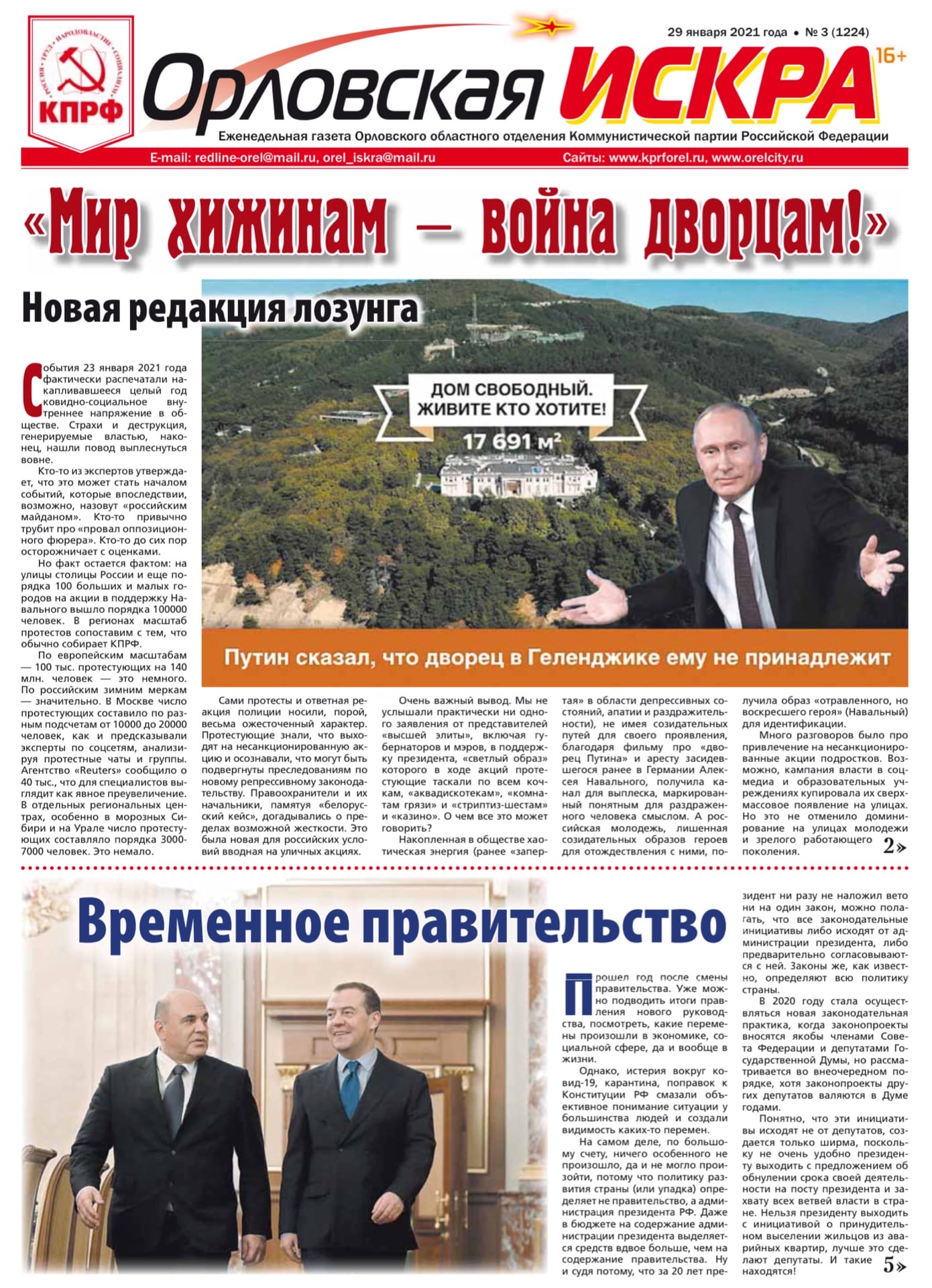 Орловская искра №3 (1224) от 29 января 2021 года