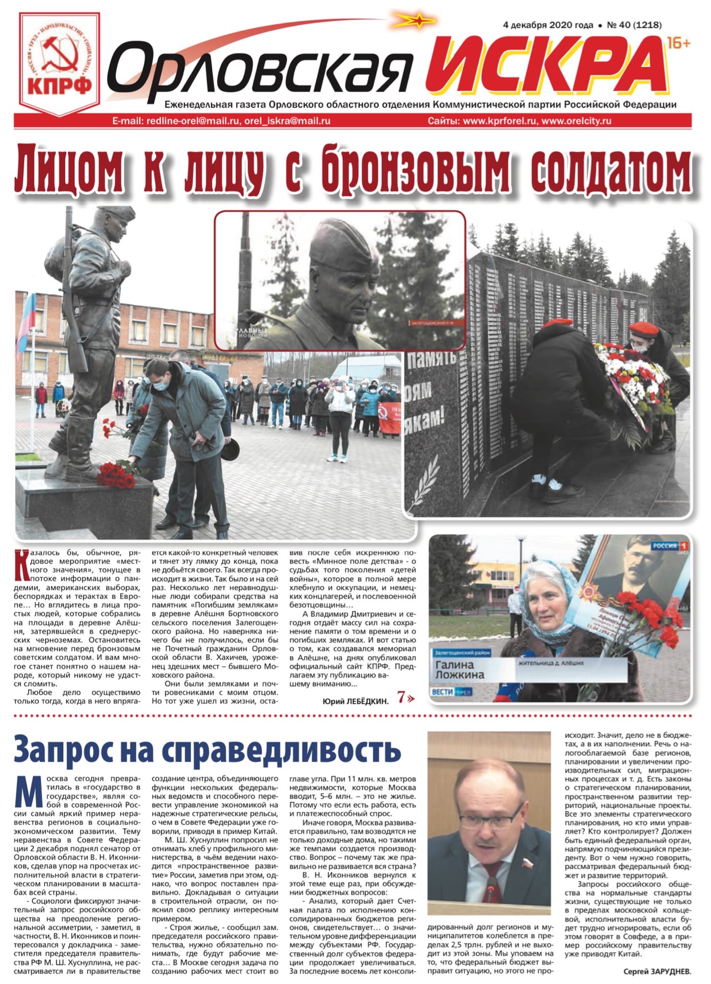 Орловская искра №40 (1218) от 04 декабря 2020 года