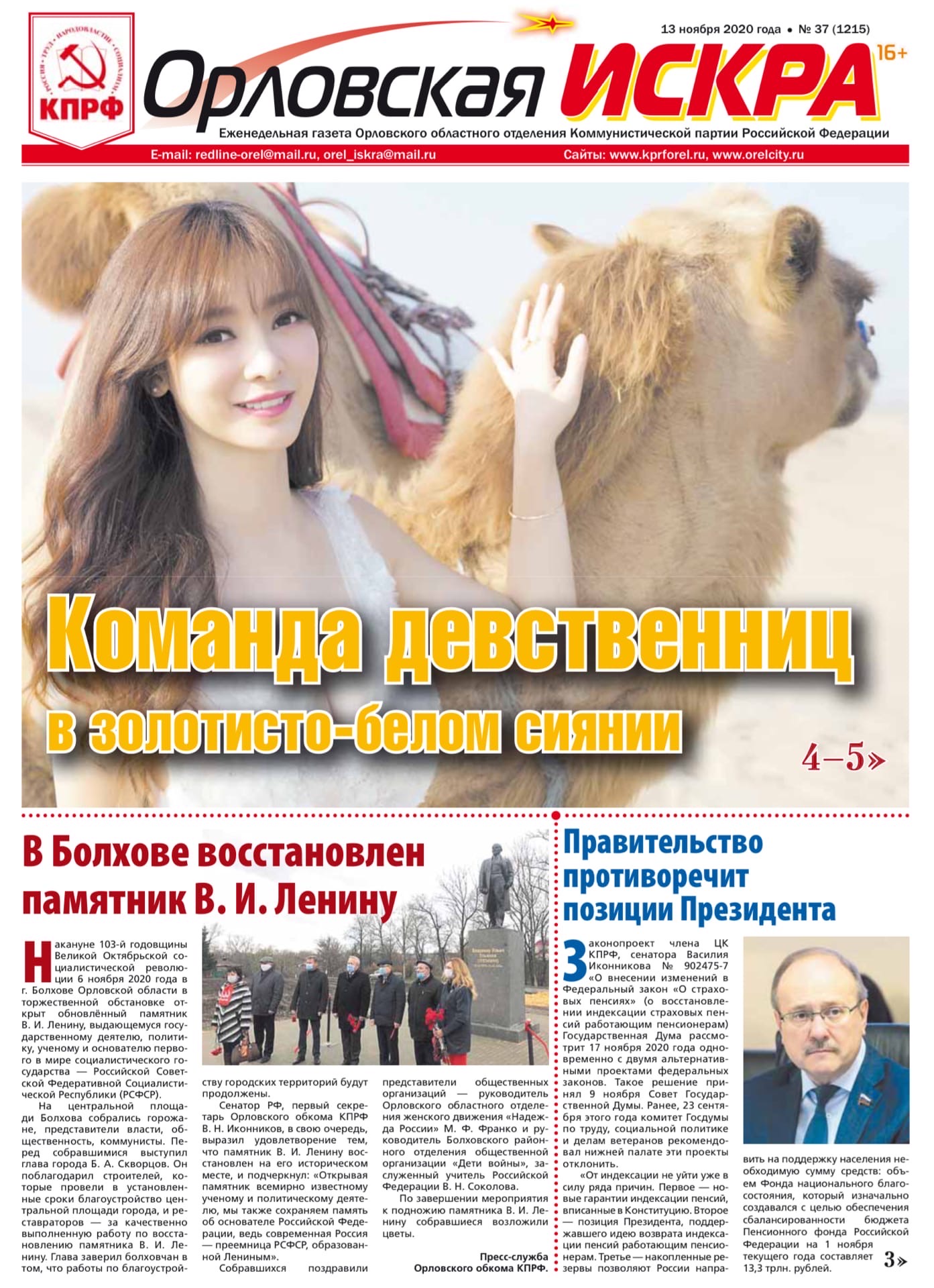 Орловская искра №37 (1215) от 13 ноября 2020 года