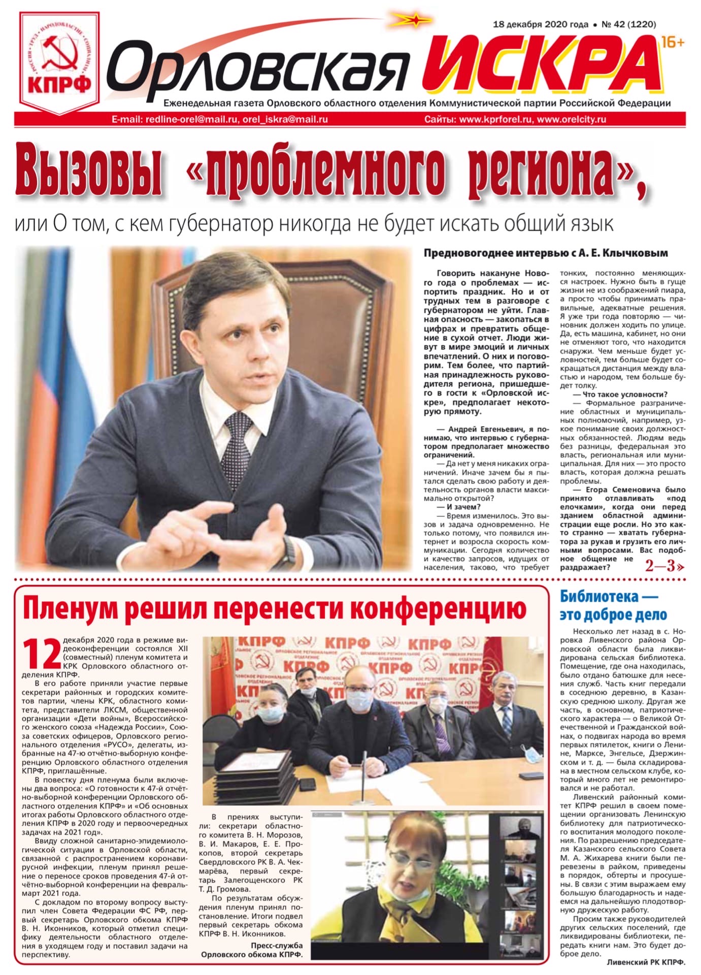 Орловская искра №42 (1220) от 18 декабря 2020 года