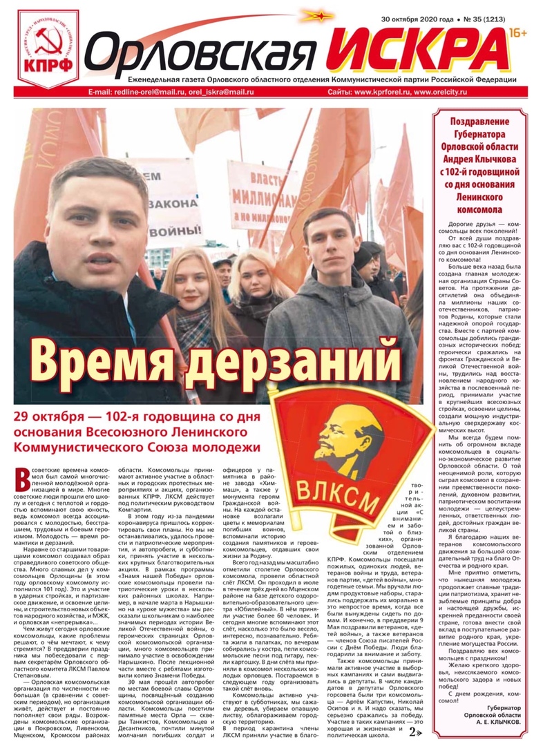 Орловская искра №35 (1213) от 30 октября 2020 года