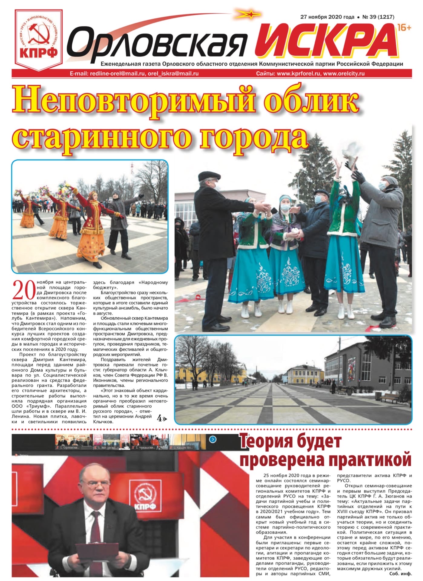 Орловская искра №39 (1217) от 27 ноября 2020 года